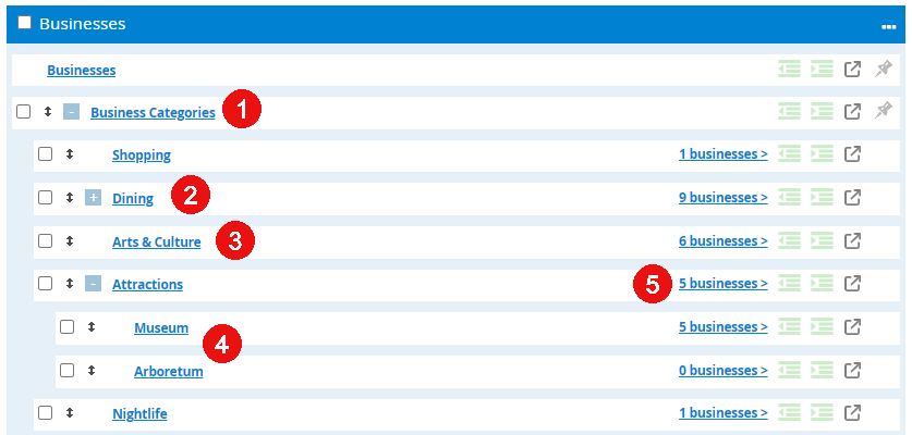 Organizing your Business listings with categories & subcategories will make it easier for visitors to find what they're looking. It allows site users to filter businesses into smaller groups, while also making it easier for you to manage the information in Spark.