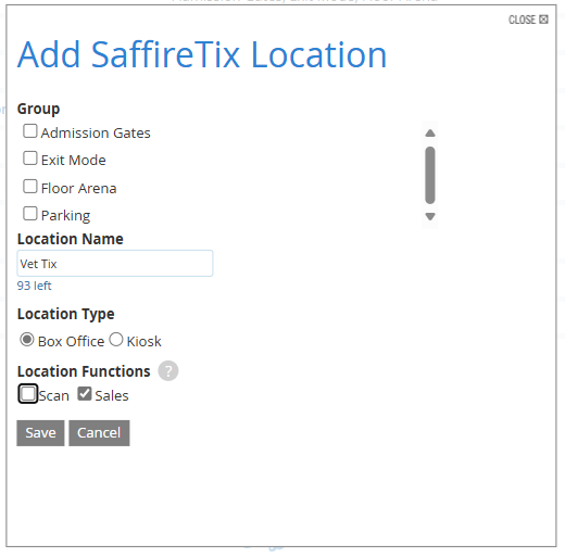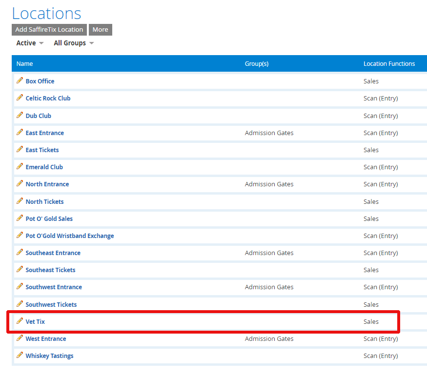 Once Vet Tix is enabled, add Vet Tix as a SaffireTix sales location under Commerce > SaffireTix > Locations, with only Sales enabled.