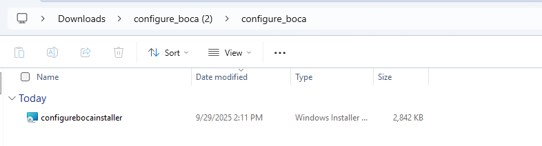 - When the extracted folder pop-up opens, navigate to configure_boca.