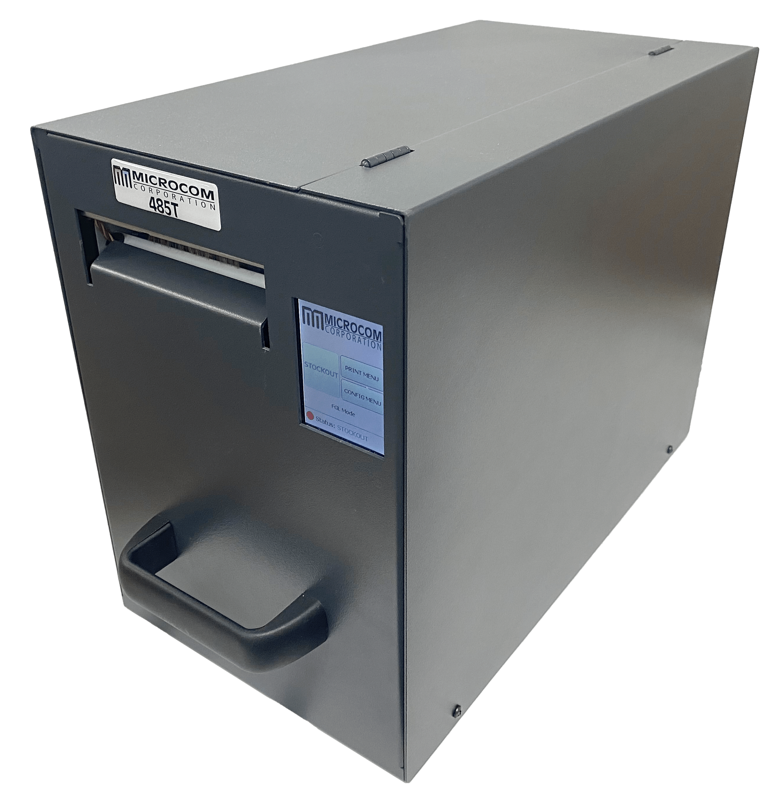 The Microcom 485T is the same basic printer as the 485TC, but in an enclosure designed to hold ticket stock inside, rather than outside, the printer. The same setup and troubleshooting apply to the 485T, with the exception of one step during driver installation. If you are using a 485T, be sure to select the proper printer (485T W (300dpi) cutter) during the driver installation process. as this may affect the print settings.
