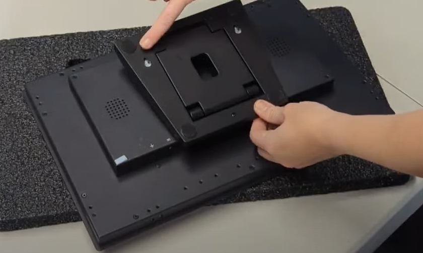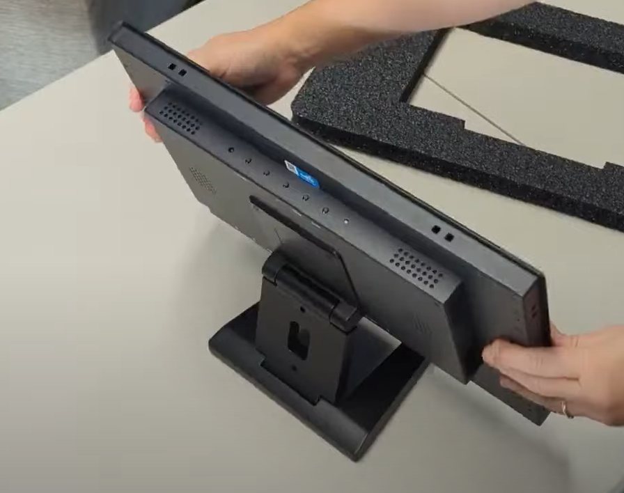 Kiosk monitors are sent with a mounting kit attached that is compatible with both wall mounting and standing up on a tabletop. Depending on the setup and location you choose, you may need to securely mount the monitor to prevent theft or tampering. If you are setting up self-service in a monitored area, this may not be necessary.
