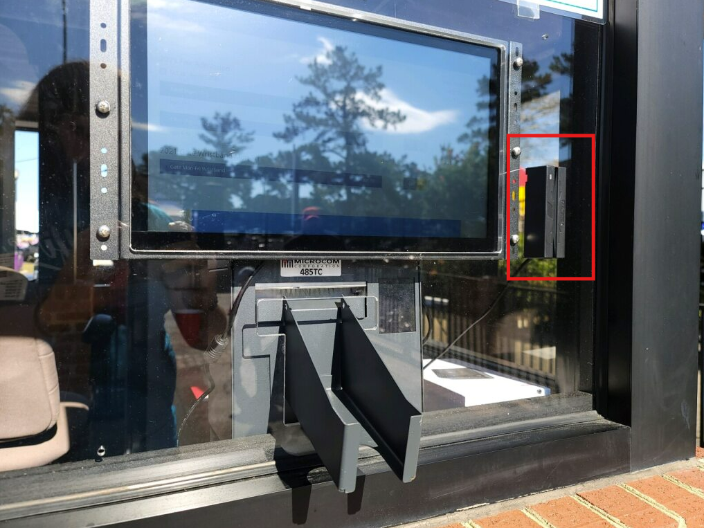Card readers should be securely mounted to the front of the kiosk enclosure with Velcro to ensure they don't fall off during transactions.