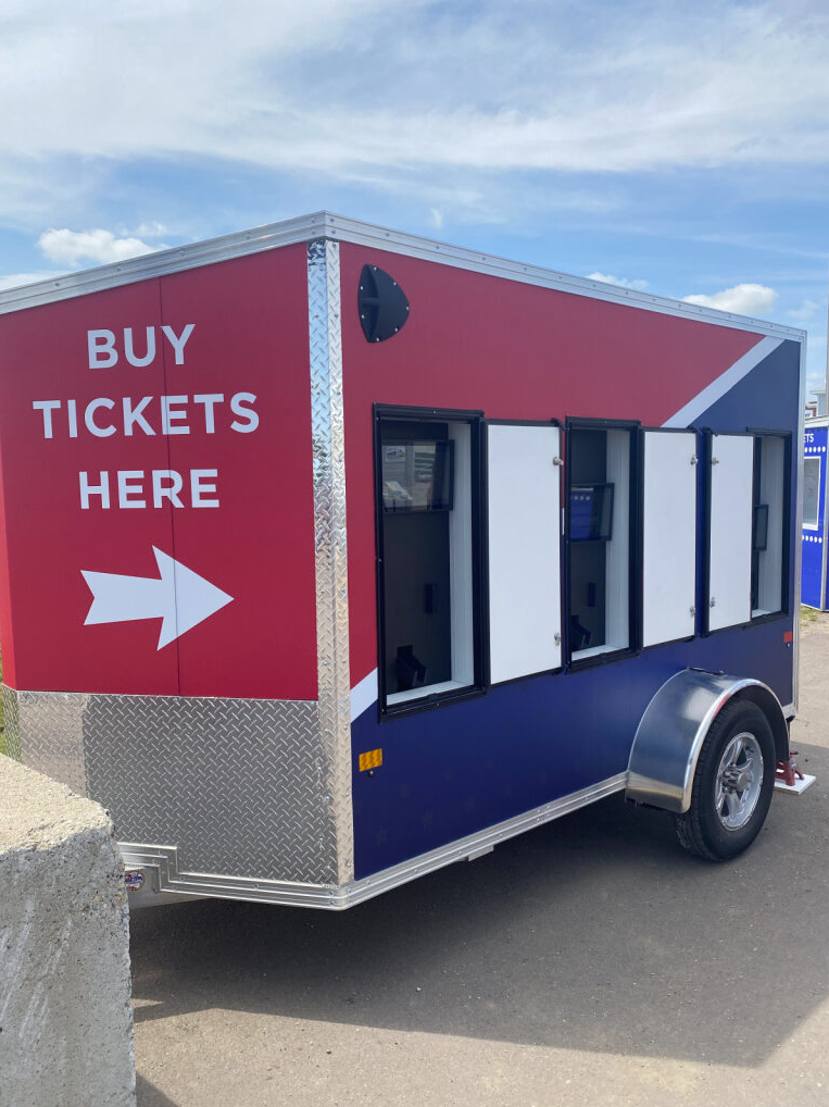 These kiosks are mounted inside a trailer for easy relocation. They even have doors to keep them secure at night!