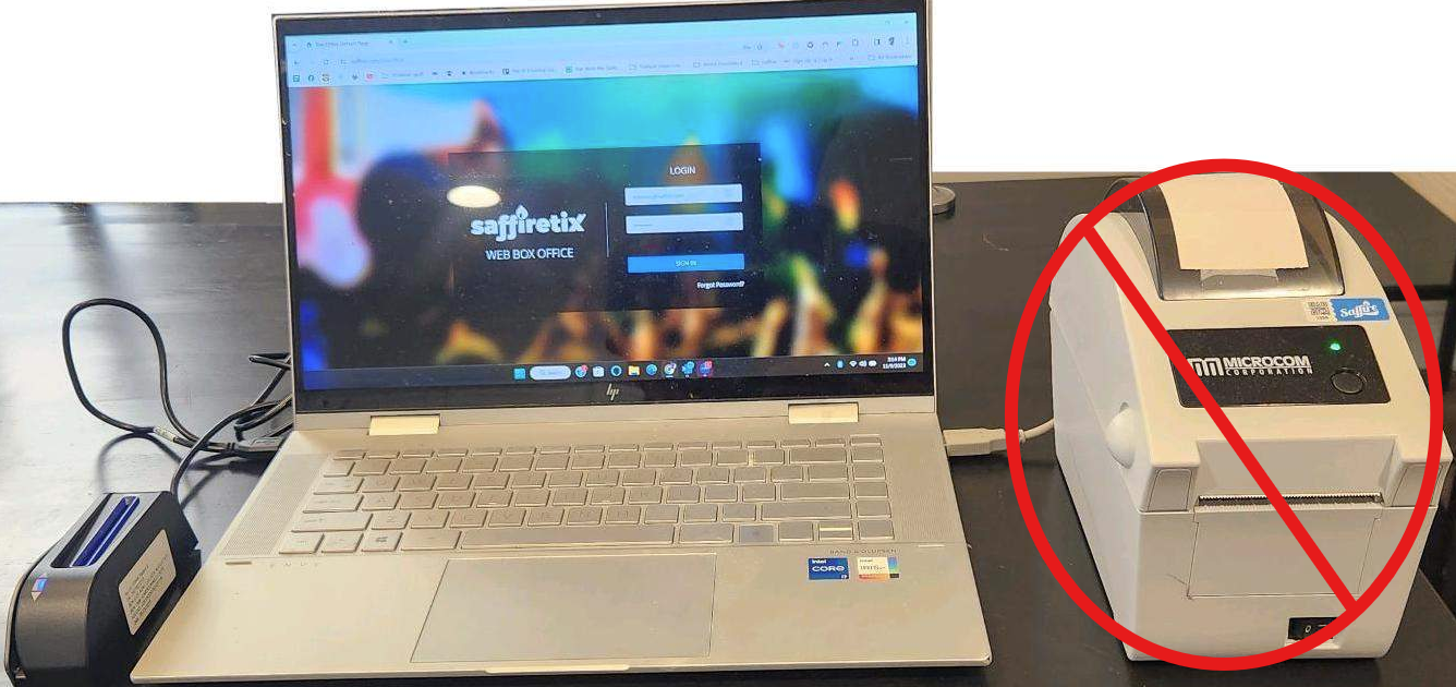 This Box Office Kit contains everything you need to sell tickets from a staffed location but does not provide a ticket printer. This kit can be used with your self-owned printer (must be SaffireTix Box Office supported model) or for selling auto-redeemed tickets. You can also send tickets to purchasers using e-mail or SMS (text message) via this kit. For information, visit our Box Office Equipment Guide.