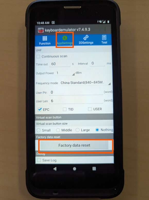 - After removing the Chainway from the trigger, exit Kiosk Mode (tap screen 5 times, then enter password T1xxxxxxxxxx).