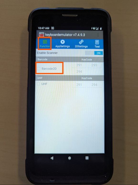 Select the Function tab, then check Barcode 2D then Enable Scanner