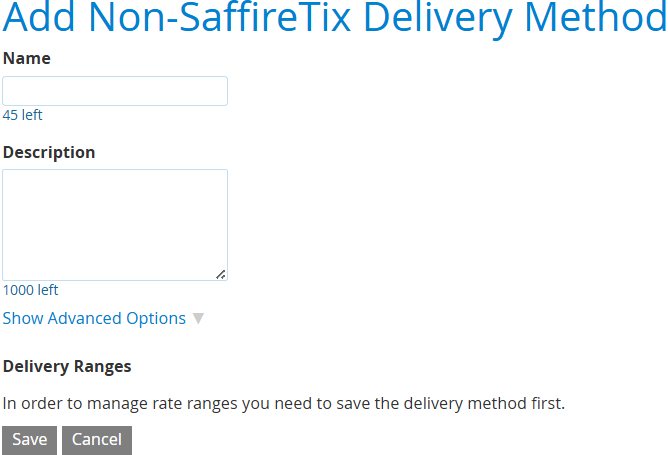 Click SAVE to review Advanced Options and to add Delivery Ranges and Pricing