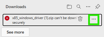 - You may see a notice in your downloader that the file can't be downloaded securely. Click on the three-dot menu at the dop of this window and select Keep.
