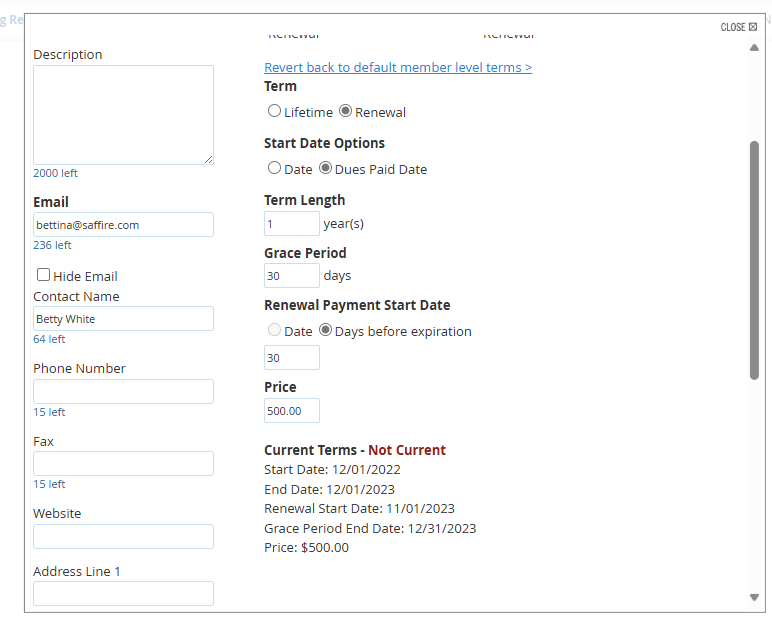 - check box if you want the include the current term if a member is paying before the renewal payment start date